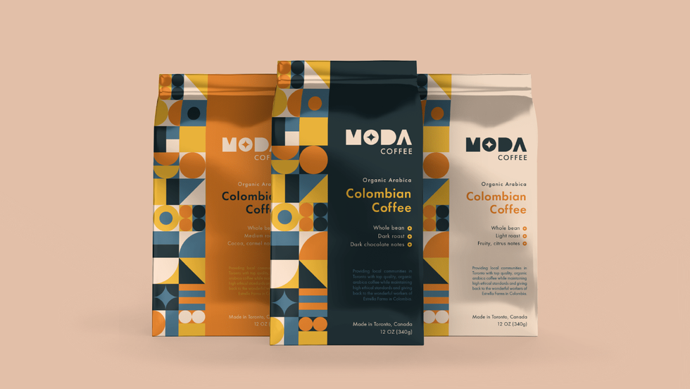 Moda Coffee brand identity and packaging design by Yusra J.