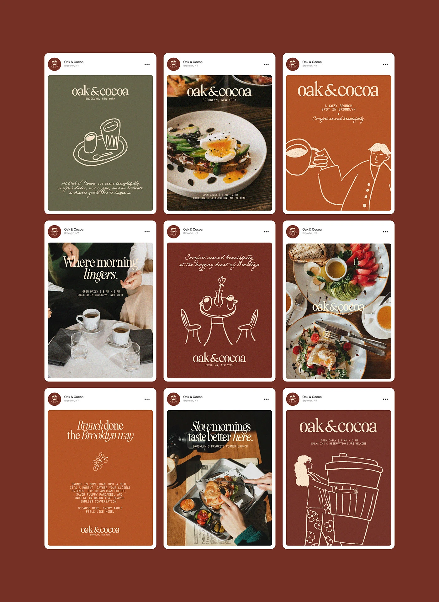 Oak & Cocoa Brunch Café & Bistro delivers a brand identity that feels like stepping into your favorite weekend ritual—warm, textured, and effortlessly elevated. Stellar Studios crafted a visual language built around natural materials, grounded typography, and packaging that feels both handcrafted and modern. This collection brings the personality of a neighborhood café to life with thoughtful details and a polished, welcoming aesthetic. Perfect inspiration for cafés, bakeries, brunch concepts, and boutique food brands aiming to create a memorable, sensory-driven experience.